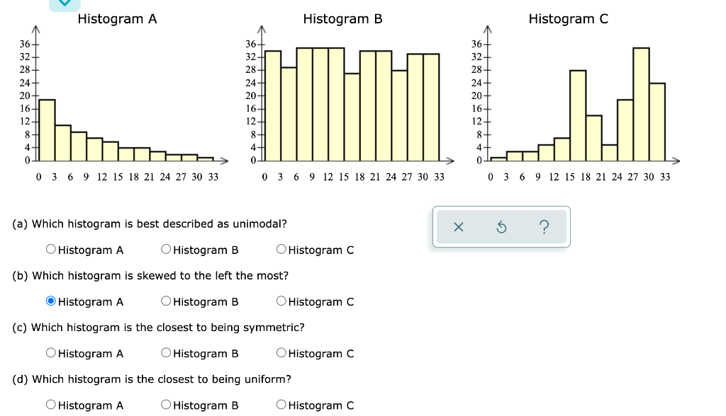 Solved Histogram A Histogram B Histogram C 36 32 28 24 20 Chegg Com